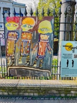 Neben dem Kunstwerk gab es pro Station ein Schild, auf welchem sich der Name des/der Künstler*in, die üblichen Bildbeschriftungen, ein QR-Code für den Videolink zu den Erläuterungen des/der Künstler*in zum eigenen Werk, eine Handlungsanweisung für einfache gymnastische Übungen und ein Verweis auf die nächste Station befanden. Die künstlerischen Arbeiten sind außen an öffentlichen Gebäude bzw. deren Zäunen im Bereich des Goetheplatzes angebracht.