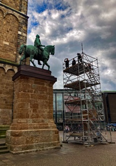 Das historische und übermächtig anmutende Reiterstandbild auf dem Domshof befindet sich an einem der zentralsten Orte Bremens. Es wird für drei Wochen auf ein menschliches Maß reduziert, so dass sich die Besucher*innen aus einer demokratischen Perspektive heraus ein eigenes Bild der geschichtlichen Bedeutung Bismarcks machen können.