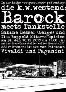 Bei der Veranstaltungsreihe „outgesourced“ sollen an ungewöhnlichen öffentlichenund sich im Betrieb befindlichen Orten wie z.b. an der Tankstelle Waller Heerstrasse direkt neben der k.w.westend und der Autowaschanlage „clean wash“ (Waller Heerstrasse 177) Konzerte stattfinden. Dafür soll es zum einen einen