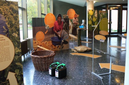 Auf fünf Entdeckerpfaden erfahren Besucher/innen der Ausstellung, warum Menschen an Unterernährung leiden und wie der weltweite Hunger bekämpft werden kann. Sind Gentechnik und moderne landwirtschaftliche Maschinen ein Rezept gegen den Hunger? Warum macht Biosprit Hunger und wie kommen die „Hähnchen des Todes“ von Europa nach Afrika? Können Kleinbauern die Welt ernähren?